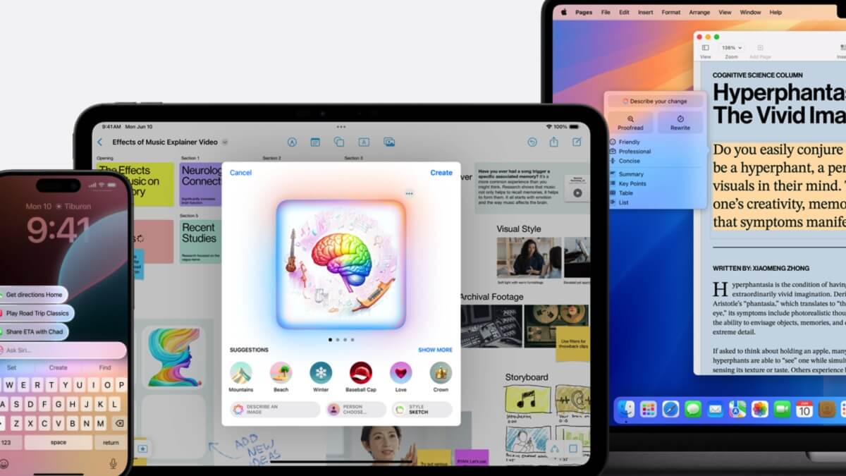 Сообщается, что Apple Intelligence позволит устройствам распознавать слова пользователя, генерировать тексты и картинки, видео и краткое содержание писем, создавать собственные эмодзи и многое другое.