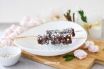 Пока топится шоколад, можно продеть зефирки на деревянные шпажки, примерно по 3-4 штуки на каждую (зависит от размеров зефира).