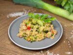 Через 15 минут открыть мультиварку и добавить овощи и специи по вкусу, перемешать. Готовить еще 10 минут, чтобы бульон полностью впитался и овощи стали мягкими.