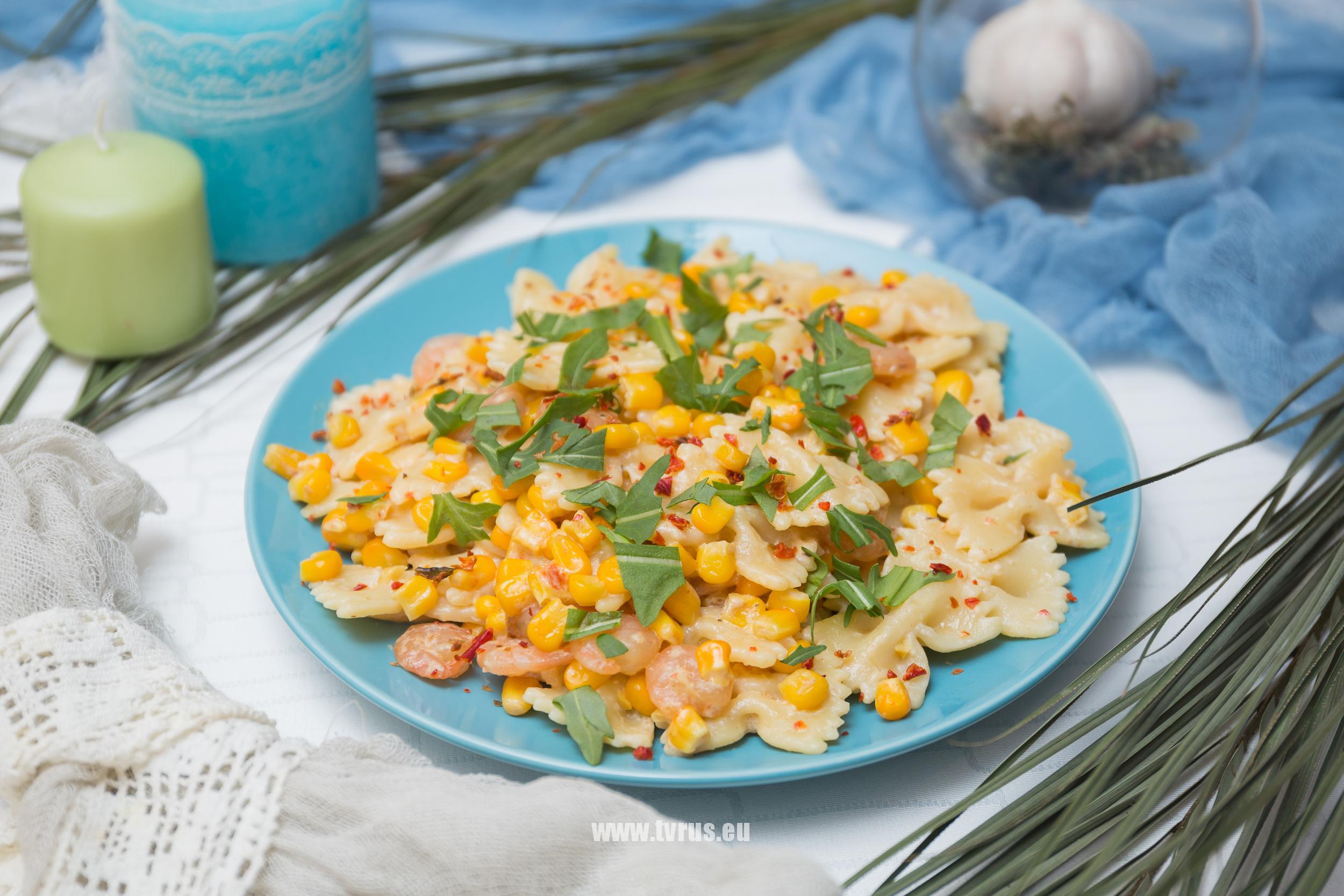 Паста с креветками – это всеми любимая классика. Это очень вкусно и красиво! Один из лучших вариантов для будней, если хочется чего-то не банального на обед или вечер. Дополняет блюдо кукуруза, а также сливки. Приготовление очень простое, поэтому готовка будет только в радость!