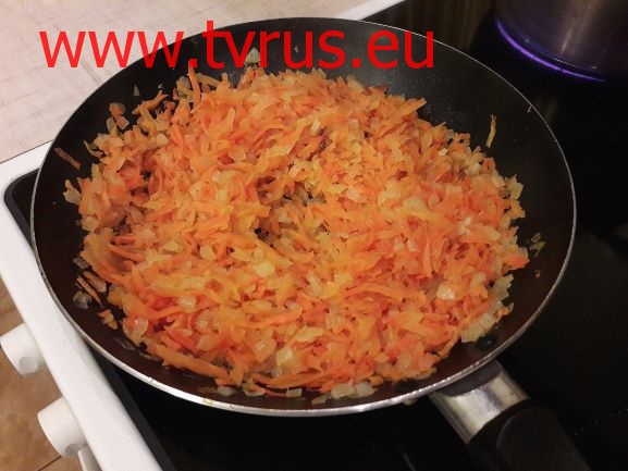 Затем добавить натёртую морковь и обжаривать до золотистого цвета.