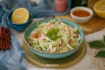 Оригинальный салат из обычных ингредиентов! Такое возможно? Конечно! Всего три ингредиента, необычная заправка – и все готово! Важный момент – ингредиенты для салата необходимо предварительно хорошо охладить, тогда получится еще вкуснее. Далее более детально о процессе приготовления.
