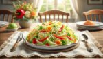 Разрежьте капусту пополам, удалите кочерыжку и нарежьте очень тонкой соломкой. Приятного аппетита!