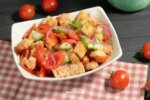 Летний итальянский салат панцанелла – довольно необычное, но очень вкусное блюдо. В его составе, кроме привычных овощей и зелени – хлеб, впитывающий влагу из томатов и придающий салату особенный вкус.