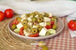 Сытный и вкусный салат по мотивам классического греческого. Изюминка рецепта — сыр, запеченный в духовке, благодаря чему блюдо обретает новые оттенки вкуса.