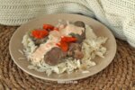 Традиционное арабское жаркое, которое так же называется «мансаф» — отличный выбор для семейного обеда. Главная изюминка этого блюда – соус на основе йогурта и жареного арахиса.