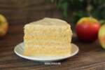 Легкий тортик с яблочно-сливочным кремом просто тает во рту, оставляя легкое медовое послевкусие. Тонкие и мягкие коржи быстро пропитываются, и уже через пару часов после приготовления апфельмусс-торт можно подавать к столу.