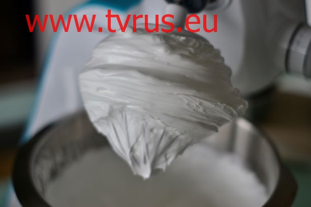 Взбить белки в стойкую пену и, не прекращая взбивать, добавить порциями сахар — масса станет плотной и шелковистой. Аккуратно, при помощи лопатки или ложки, подмешивать крахмал, ванильный экстракт и лимонный сок.