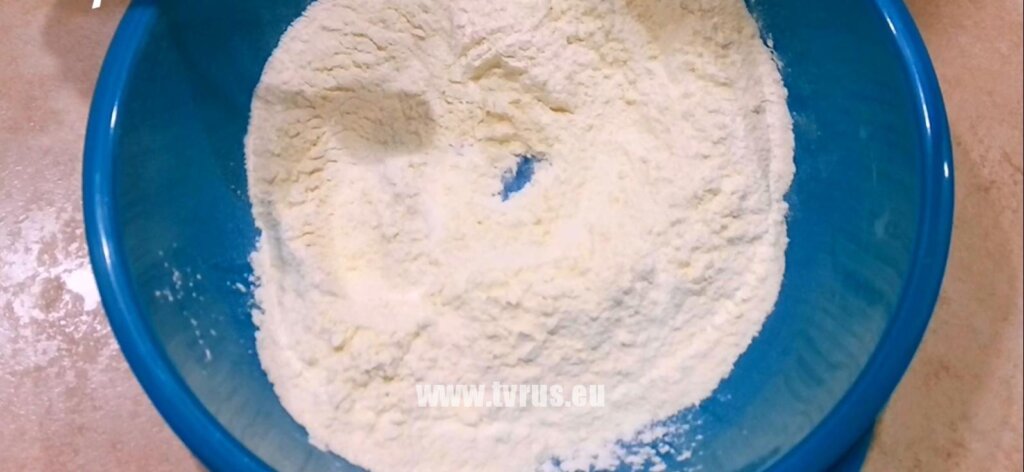 В отдельной миске смешать 200 г просеянной муки с солью.