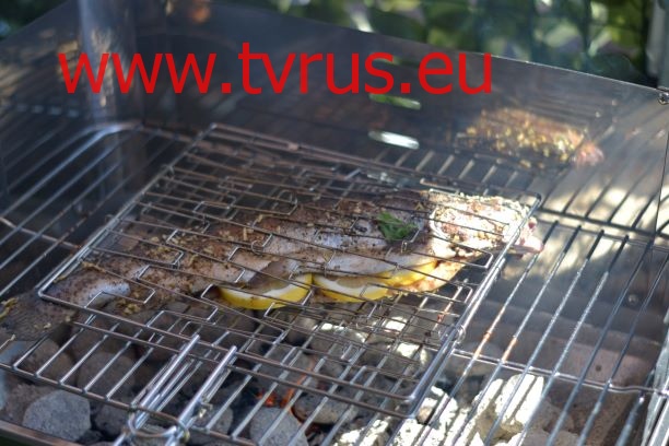 Выложить рыбу на решетку гриль и обжаривать над углями средней (ближе к низкой) температуры на гриле или мангале по 6-8 минут на каждой стороне.