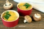 Добавить муку и перемешать. Разложить грибную смесь в формочки для запекания и залить сливками.